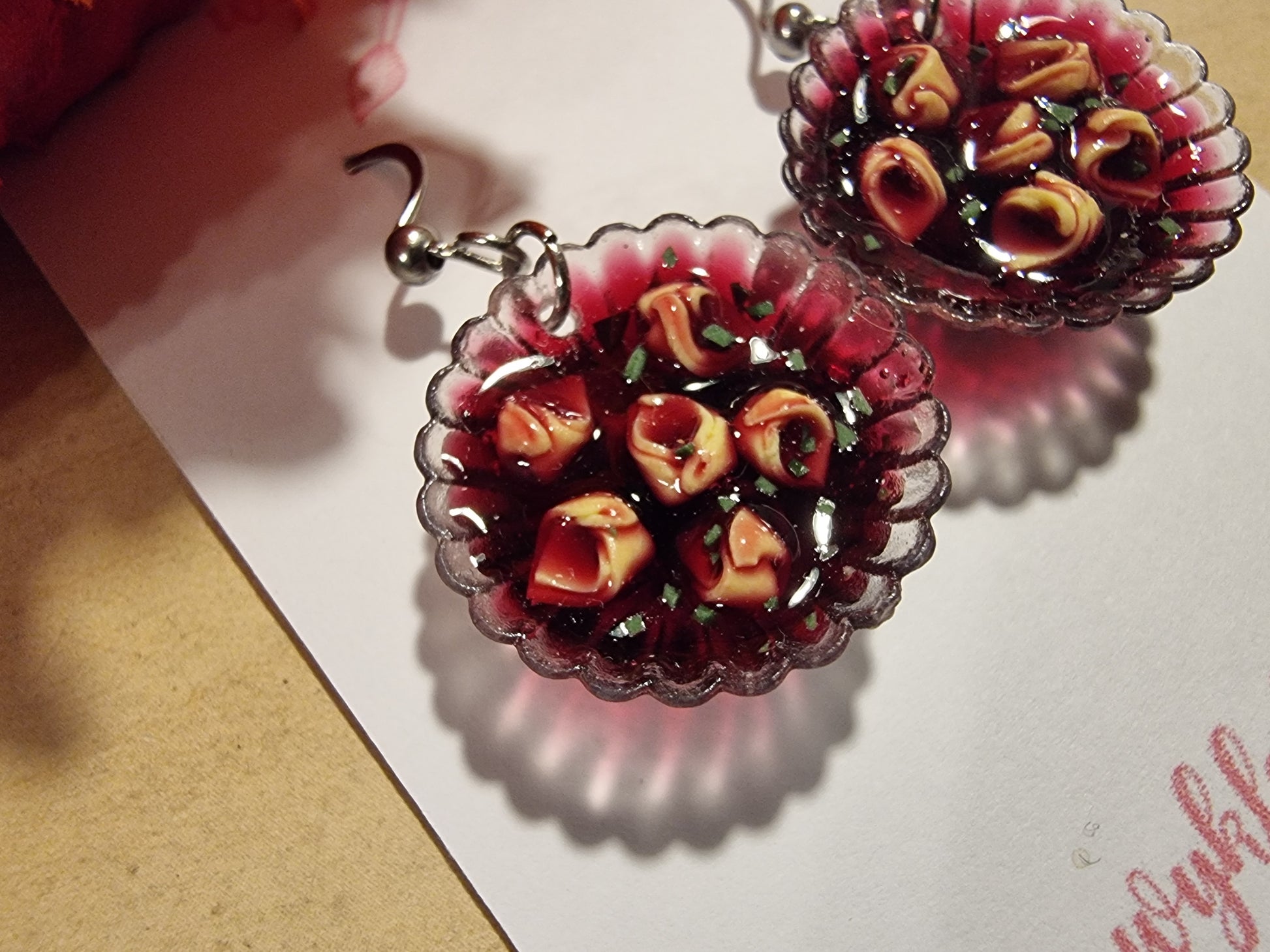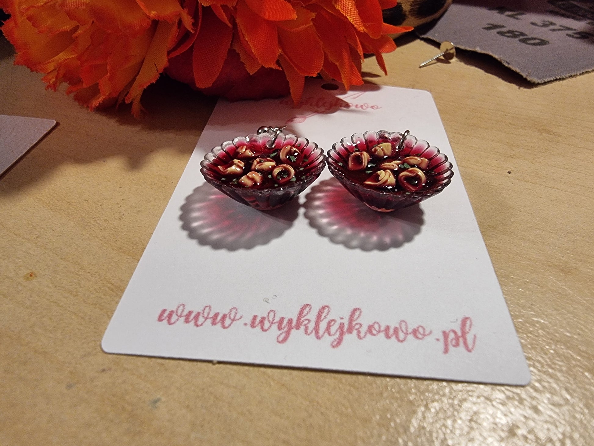 Tradycyjna wigilijna klasyka… zamknięta w biżuterii! Te wyjątkowe kolczyki przedstawiają maleńką miseczkę aromatycznego, intensywnie czerwonego barszczu oraz trzy drobne, ręcznie formowane uszka. Całość wygląda tak realistycznie, że aż chce się zjeść – ale nie, to tylko (i aż!) biżuteria, która rozkochuje w sobie każdego fana polskich smaków i nietypowych dodatków.