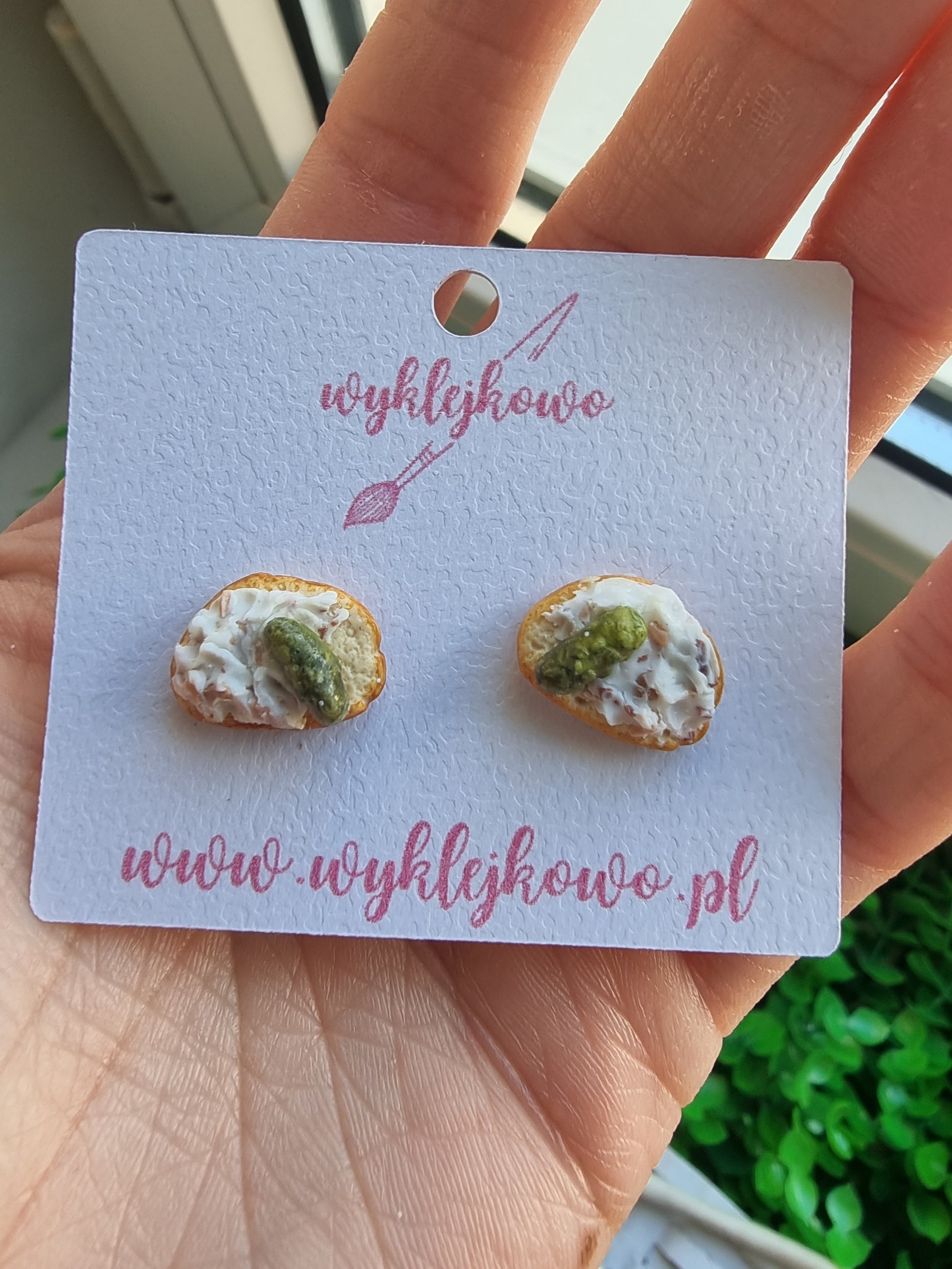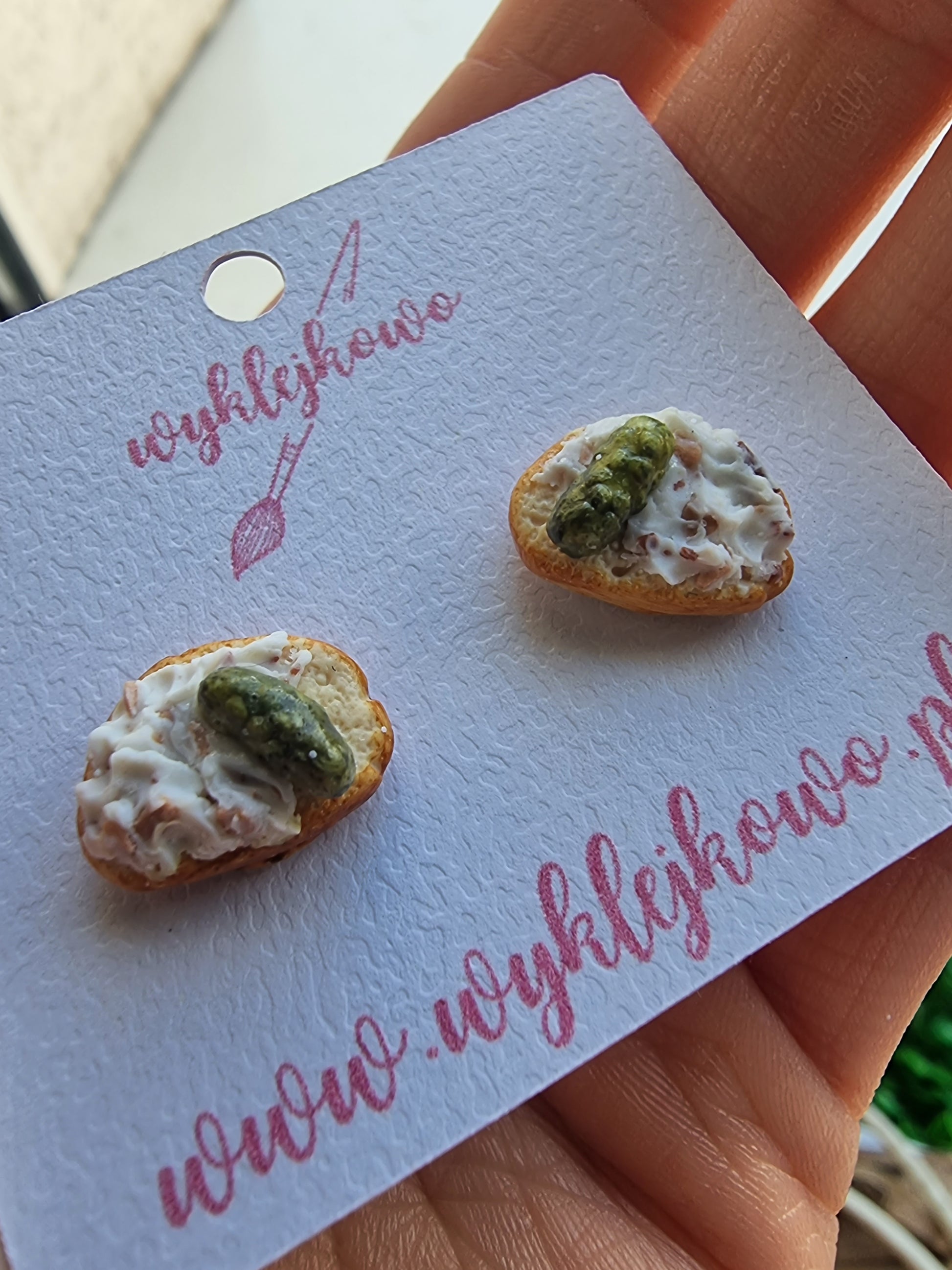 Kolczyki "chlebki ze smalcem i ogórkiem" wkrętki