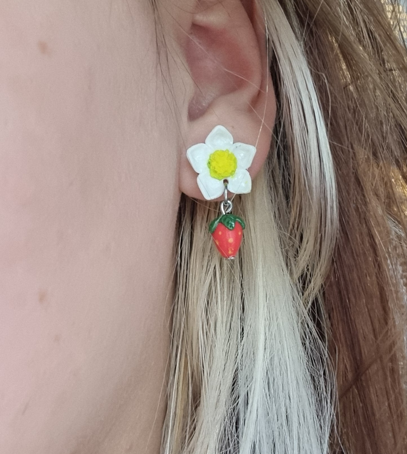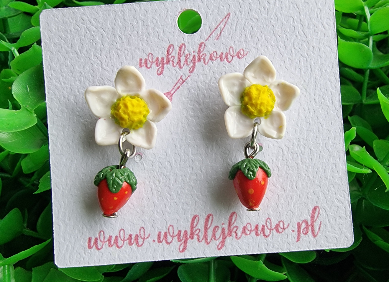 Kolczyki „Truskawkowe Pole” – słodki duet prosto z ogrodu! 🍓🌼